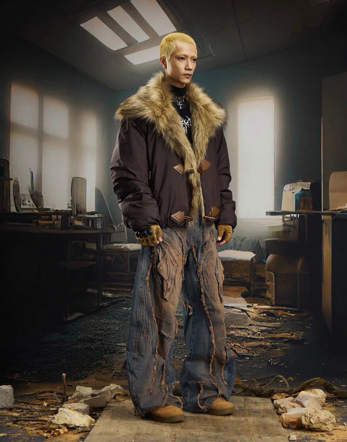 高品質なコットン素材を使用し、柔らかな肌触りと快適な着心地を提供しています。バルーンスタイルとディストーション加工が相まって、カジュアルな見た目の中にも個性的な魅力を加え、様々なシーンで活躍する一着です。