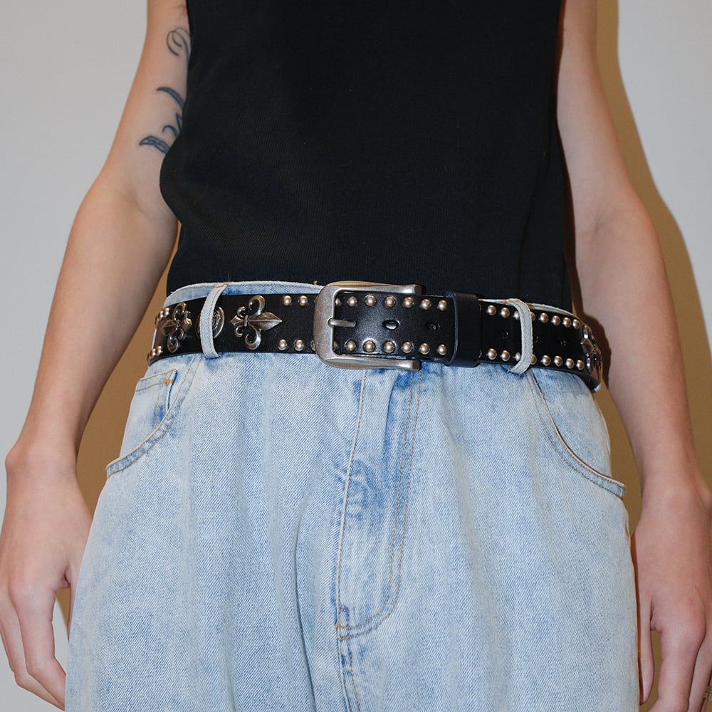 Studded Leather Beltは、あなたのコーディネートに新たな魅力を加える、手放せないアイテムです!